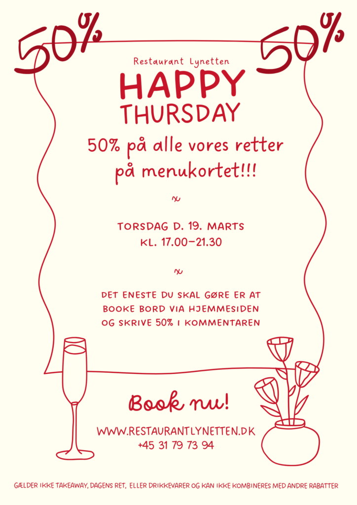 50% på alle retter fra menukortet!